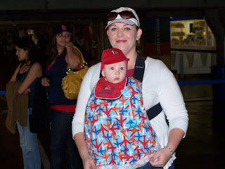 Sunday we had tickets to see the Dodgers play the Cardinals and it was Ben's first official ball game. We were having a great time until he got a little tired and the crowd got a little loud so he and I left Adam to head outside for some peace and quiet. After a little snooze and some green beans he was good to go and seemed to manage the rest of the game ok. he let out a few more cries when things got a little loud and we eventually wound up leaving the gave during the 8th inning with it tied 3 to 3. Unfortunately the Dodgers won the game but we still had a great time. Ohh and we got to see a celebrity, Michaela Conlin who plays Angela on the show Bones.